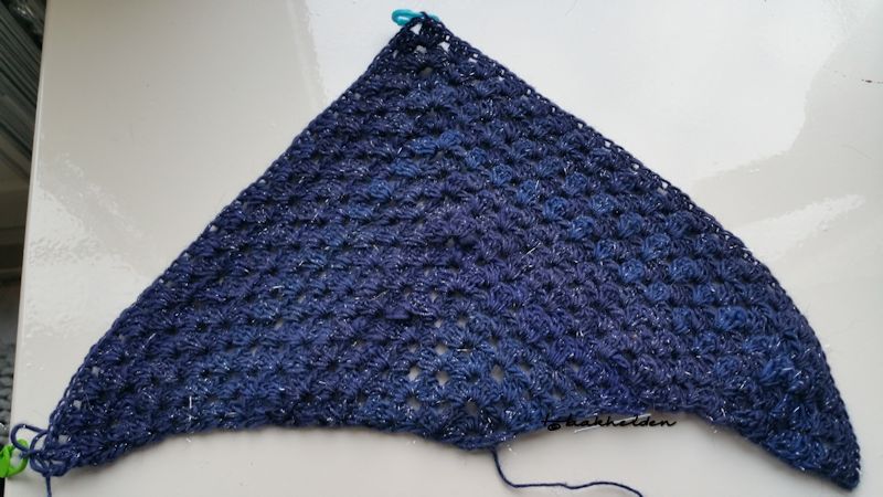Wat een mooie kleur omslagdoek! Ik kan me voorstellen dat het wel even wennen is als het garen van dikte verloopt maar het geeft ook een mooi extra effect vind ik.
