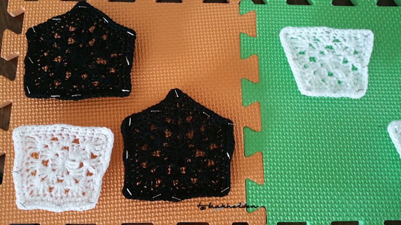 Ik heb eerst alle 19 granny’s gehaakt voor één voorkant met haaknaald 4 mm. Daarna heb ik ze gelijk geblockt. Dit is hoe ik het heb aangepakt: