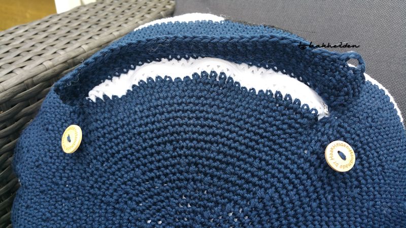 Ik heb nog een flapje gehaakt dat over de rits dat vast zit met twee knoopjes.