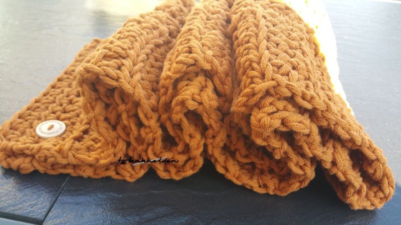 Toen ik de foto van de sjaal zag voor het eerst zag, dacht ik dat het om een gebreide versie ging. Ik zag namelijk de tricotsteek er in terug. Vinden jullie ook niet? En door de richting waarin deze sjaal gehaakt is, vind ik hem super leuk over komen! Het lijkt een enorm project, maar ik heb hem in drie dagen gehaakt. Nou dat is de tweede wat ik er leuk aan vond, want heb hem inmiddels al veel gedragen. Het garen is super zacht, geeft niet af en is heerlijk warm.