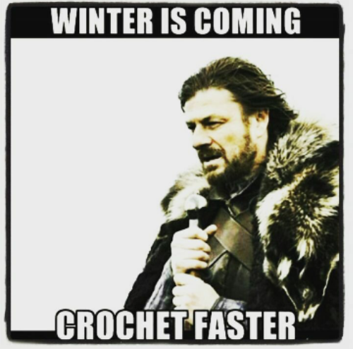 Ik moest hier ontzettend om lachen. Niet alleen als haakverslaafde, maar ook al Game of thrones kijker, haha! Hoewel ik al twee sjaals in de kast heb liggen, wilde ik er nog een haken. Dit keer koos ik ervoor om een colsjaal te maken. Maar nu het kwik daalt, moest het wel een snel project zijn. Op de Krea Doe vond ik bij de stand van Echtstudio al het perfecte garen voor een snelle sjaal. Bravo Big van Schachenmeyer is een mega bol van 200 gram met dik acryl garen. Eén bol = één colsjaal.