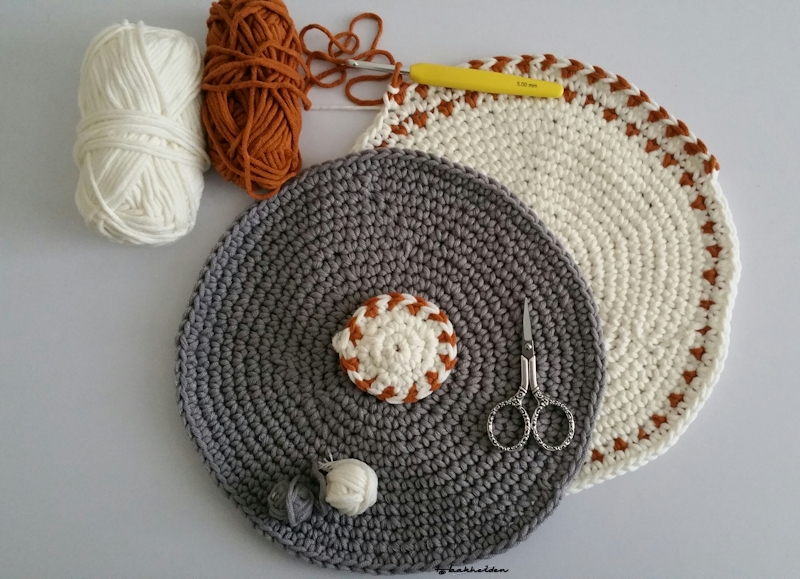 Wat meteen opvalt is dat Tessa, in dit boek, veel gebruik maakt van het By Claire nr. 2 garen wat de deco’s een stoer uiterlijk geeft. Ik ben erg fan van het garen, nadat ik vorig jaar er al een sjaal van haakte. Het haakt zo heerlijk weg, haha! Met dit project gebruikte ik haaknaald 5 mm. Ik gebruikte dezelfde kleuren die in het boek worden aangegeven.