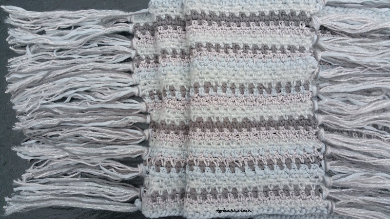 Hoi Monique, Helemaal met je eens: franjes afschuwelijk. Maar het staat zo leuk! Nu valt zo’n sjaal nog wel mee, maar een poncho of omslagdoek zijn helemaal een ramp. Het resultaat is echter super, net als jouw sjaal.