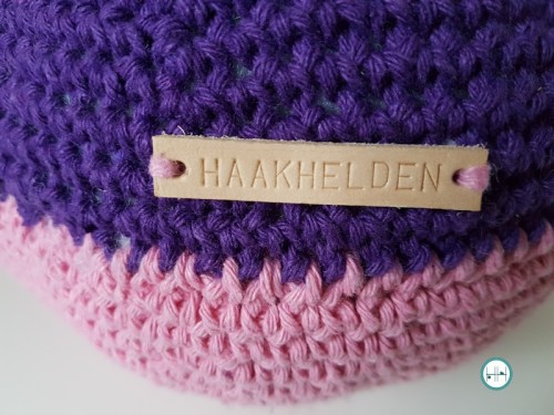 Het lederen label ( De Haakfabriek) maakt het kussen helemaal af!