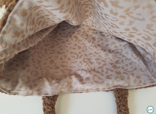Bij mijn vorige tassen heb ik de voering er met de naaimachine aan vast gemaakt. Echter dit keer was het een drama. Je kunt duidelijk merken dat dit katoen toch een stuk dikker is. waardoor mijn nieuwe Pfaff naaimachine er ontzettend veel moeite mee had. Het was dus: ‘Pufff’ in plaats van Pfaff, haha! Uiteindelijk heb ik nog meer spierballen gekweekt en de voering helemaal met de hand vastgezet met visdraad.