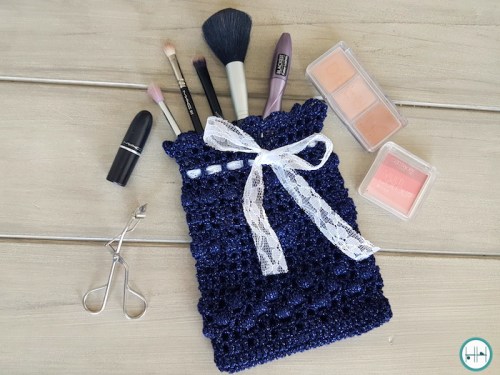Ik heb al behoorlijk wat tasjes versleten door de foundationvlekken die er niet meer uitgingen. Laat ik het dan nog maar niet hebben over de duizenden glitters die overal op gingen zitten, haha! Dit gehaakte exemplaar wil ik gaan gebruiken tijdens weekendjes weg of voor in mijn tas. Oh ja, want daar heb ik ook de nodige producten inzitten, oeps! Vaak is dat een lipstick en mijn wenkbrauwpotlood.
