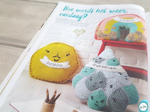 - Het eerste project wat je na het bonte thema tegenkomt, gaat over het weer. Want ‘wij Nederlanders’ praten daar graag over. Er zijn drie kussens: zon, regen en regenboog en alle drie hebben ze een geborduurde naam en een lief gezichtje (op de achterkant)