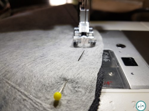 Altijd zei mijn ‘naaijuf’ vroeger: “Let erop, de binnenkant van je werk is net zo belangrijk. Want als je kleding uittrekt, bijvoorbeeld bij de dokter, wil je daar niet aan de rafels blijven hangen.” Deze uitspraak is mij altijd bij gebleven en dus was ik met dit haak- en naaiproject ook een beetje een pietje precies :). Beide haakdelen heb ik, nadat ik er de versteviging op had gestreken, op de lap stof gelegd met aan alle kanten ruim 1 cm naad om de juiste maat te bepalen. De geknipte voering delen leg je ‘goed op goed’ dat wil zeggen met de goede kanten op elkaar. Nu kun je de beide voeringen gaan stikken met de hand of, zoals ik gedaan heb, met de naaimachine.