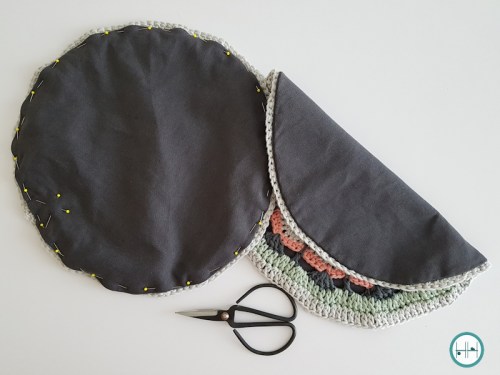 In het boek vind je een zeer duidelijke uitleg hoe je het ‘voeren’ aan moet pakken. Mijn haakwerk was heel snel klaar, maar deze ‘klus’ had ik toch nog wel een weekje of wat laten liggen. Gek eigenlijk, want ik heb best wat jaartjes ‘naaiwerk’ en moeilijke naaiprojecten achter mij liggen. Toch was dit weer een nieuwe uitdaging vanwege de ronde voering en om dat netjes rondom het haakwerk te naaien.