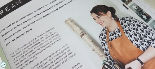 Ik zou het blad tekort doen door het alleen een DIY-magazine te noemen. Het bevat namelijk veel meer dan dat. De 120 pagina’s zijn gevuld met interieur inspiratie, recepten, home deco spullen, interviews met diverse mensen, maar ook nog haak-, brei- en naaiprojecten. Eigenlijk kun je heel goed ‘Lisanne’ in het blad terugzien.