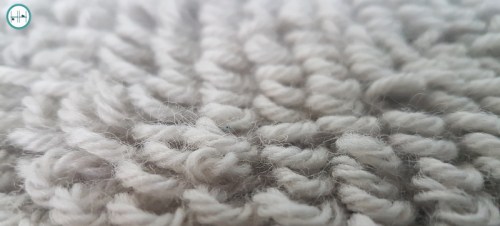 De lusjessteek heb ik nog nooit eerder gehaakt.Ik lees altijd eerst het patroon rustig door en heb daarna het bijbehorende filmpje bekeken. Toen ik de steek doorhad, kon ik het eerste bolletje uit de de grote Mystery tas pakken. Het gebruikte garen is Schachenmayr Originals Wool 85 garen in kleur lichtgrijs (293).