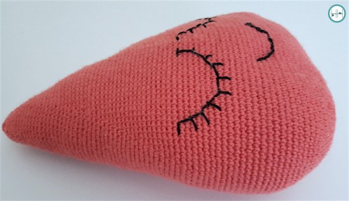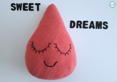 Ik krijg wel eens de vraag wat ik met de gehaakte projecten doe. De druppel zou een knuffel kunnen zijn, decoratie in de kinderkamer of een klein kussentje. Je kunt er alle kanten mee op. Voor nu zet ik ‘m op mijn werk/hobbykamer, haha!