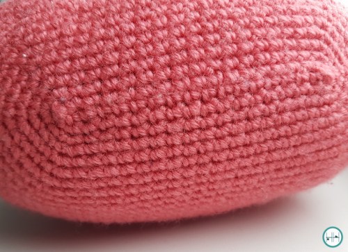 Op het label van Drops Karisma wordt naalddikte 4 mm aanbevolen. Om ‘gaten’ tussen de steken te voorkomen, koos ik voor haaknaald 3 mm. Hierdoor zie je de vulling niet en zijn de steken mooi strak. Het project voelt niet stug, stevig of heel hard aan. Ondanks de kleine haaknaald, blijft het geheel soepel.