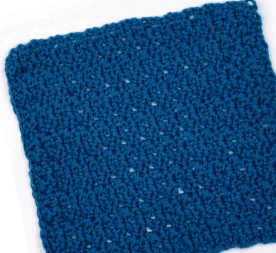 Voor deze maand heb ik dus vijf lapjes gehaakt. Laten we deze even doornemen. Allereerst haakte ik één lapje in de tulpensteek. In het voorbeeld ziet het lapje er prachtig uit, maar met mijn hand van haken ziet het er ietwat ‘gaterig’ uit. Het lapje is gehaakt met haaknaald 6 mm 1 bol Durable Cosy in de kleur ecru. De tweede bol ga ik dus gebruiken voor een andere steek.