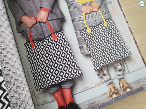 - Zwart-witte tas met grafische print gehaakt met de tapestry techniek