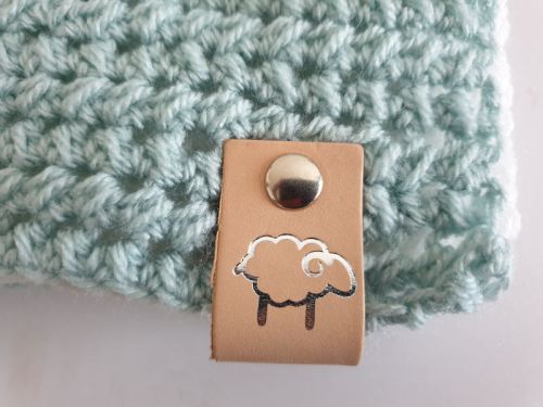 De lederen labels, verkrijgbaar bij Chantel van de Haakfabriek, blijf ik altijd een ontzettende leuke toevoeging vinden van je haakwerk. Het geeft net iets persoonlijks en dit schaapje vind ik echt zo lief 🙂 De drukknopen zorgen er voor dat je het makkelijk eraf kunt halen, voordat het gewassen wordt.