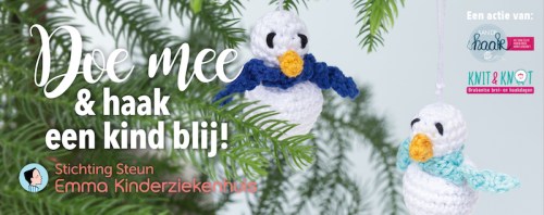 In samenwerking met uitgeverij Scala, van Aan de Haak, heeft de Knit&Knot een actie opgezet voor Stichting Steun Emma Kinderziekenhuis. Zij roepen hakers en breiers op om (kerst)hangers te maken voor in de 2,4 meter hoge kerstboom. Deze zal in december aan het Emma Kinderziekenhuis worden gedoneerd.