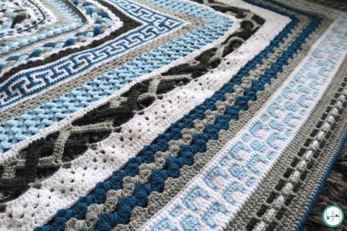 Naast het delen van, een selectie van, de foto’s, wil ik je ook graag nog even meenemen naar de laatste patroondelen. Dus daarover hieronder meer en ook deel ik een foto waarin de deken volledig uitgespreid is!