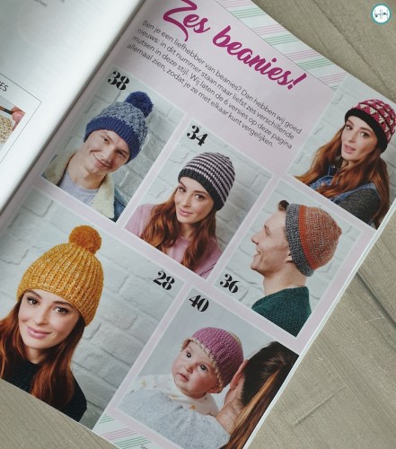 - Kortere beanie in drie kleuren voor vrouwen met een ietwat opengewerkt patroon met ruitjes. De steek geeft een beetje het effect van de spikestitch (op de cover)