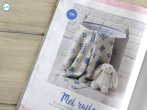 - Bloemenwei is een mint/roze deken in een granietsteek en wordt afgewerkt met enkele gehaakte bloemen (op de achterkant)