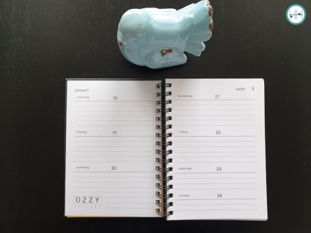 Op een doordeweekse dag zijn er vijf regels waarop je je afspraken kunt noteren. De zaterdag heeft drie regels en de zondag twee. In de rechterbovenhoek staan ook de weeknummers, iets wat ik zelf altijd heel fijn vind. Daarnaast zorgt de ringband ervoor dat de agenda plat open blijft liggen. Zowel handig bij afspraken schrijven, maar ook bij het lezen van haakpatronen!
