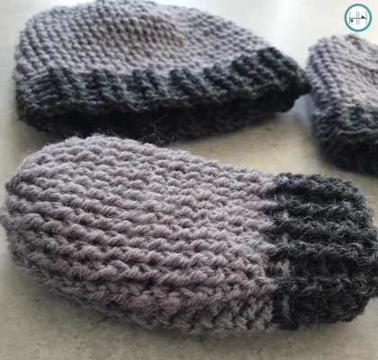 Voor de babyshower heb ik enige tijd geleden een luiermandje en octopus rammelaar gehaakt. De toen nog aanstaande ouders vonden het helemaal fantastisch. Nu hun kleine geboren is, kon ik het niet laten om nog iets te haken. Aangezien het toen nog volop winter was, heb ik een warm setje gemaakt.